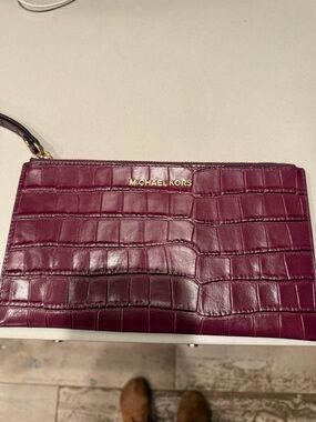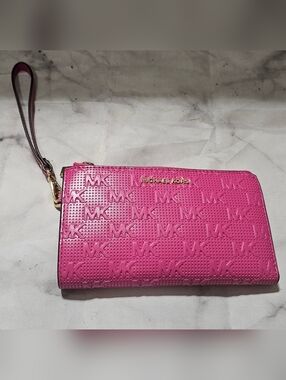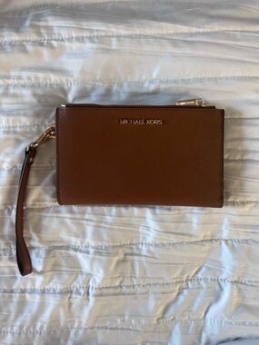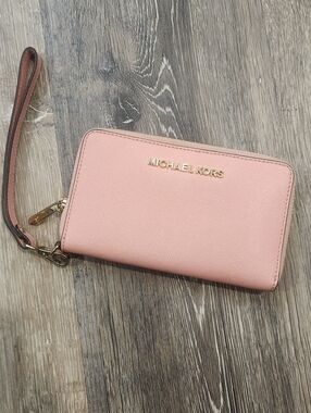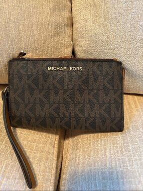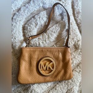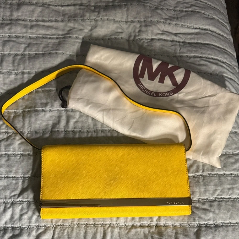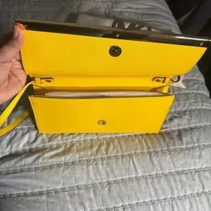 Chic yellow wristlet clutch by Michael Kors. Sleek design with a stylish strap.