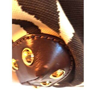Michael Kors Zebra Print Canvas Leather Trim & Gold Tone Hinged Shoulder Straps