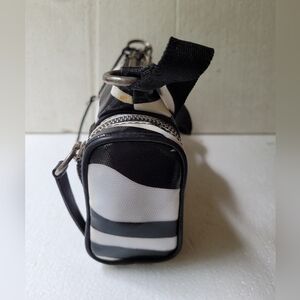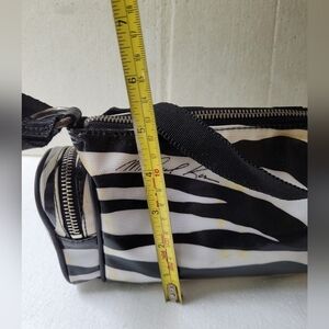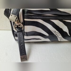 Stylish Michael Kors crossbody bag with a striking zebra print. Features black and white colors. Perfect for adding a bold touch to any outfit.