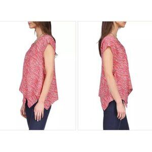 Keywords: Michael Kors women's top XS, red zebra print blouse, handkerchief hem top, designer animal print shirt, Michael Kors red blouse, women's fashion tops XS.