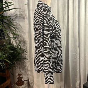 Michael Kors Zebra Print Zip Up Blouse - Black and White - Size Medium