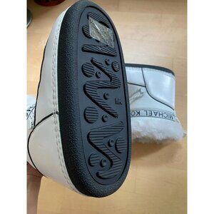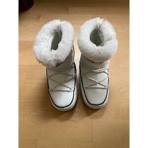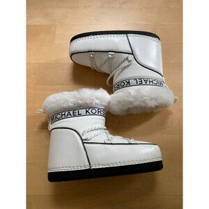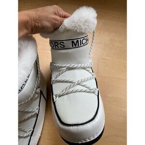 Michael Kors "Zelda" snow boots faux fur cuff Womens Size 10 white lace up NEW