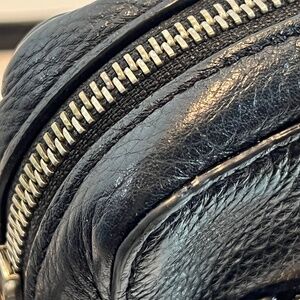 Bag is in beautiful condition. No cracks, no markings on leather and interior is clean, no tears. Hardware does show slight wear.