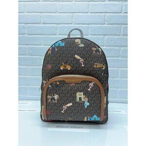 Michael Kors backpack jaycee large pocketbook girls printed brown multi