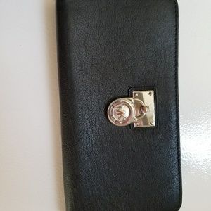 This is a beautiful black leather Michael Kors bag with a matching wallet. Both are in excellent condition, from my own personal closet. The wallet alone was $148 as you see in the tag. The bag comes with the original Michael Kors dust bag as well.
