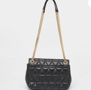 Black quilted purse with gold chain strap. could be used several ways. good condition, hardware shows wear. no returns, final sale.