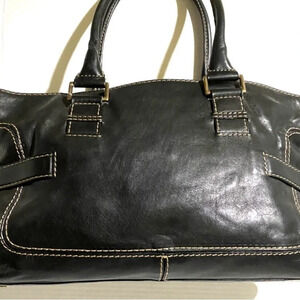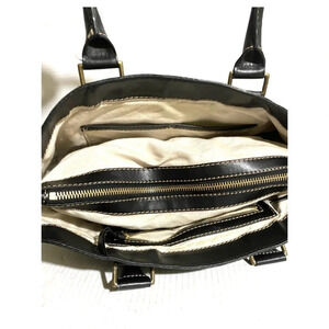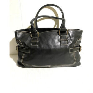 Michael Kors black leather satchel handbag with silver tone hardware 3 compartment 4 pockets at interior wall 1 zip closure fabric lining exterior have marks scratches creasing lining have stains hight 9.5” wide 17” depth 4.5” strap drop 8”The dimensions are based on approximately measurements before placing an order please check take a moment to view all photos using feature for a closer look