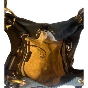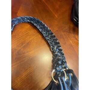 Michael Kors black leather hobo braided handle shoulder bag bucket tassel