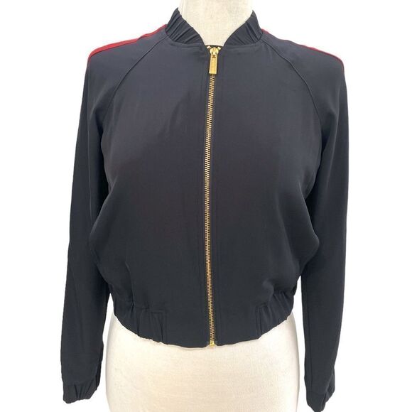 Michael Kors black red stripe elastic waist collar sleeves length 19 inches