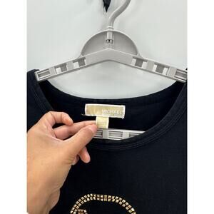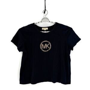 Michael Kors black semi cropped T-shirt with bold studded gold MK size 3Xl