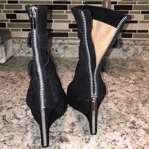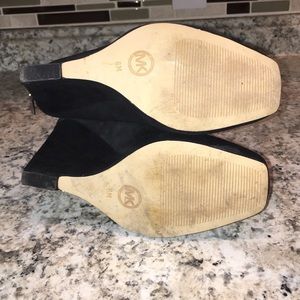 Black suede MK wedge booties. These are the perfect sexy bootie for fall! Full zipper in the back with silver side buckle on the outer sides. Size 6M. Only have been worn a couple of times. GREAT condition. Inside of the boot looks brand new. Very minimal wear on the soles (see pic 4)