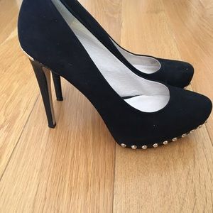 Gorgeous Michael Kors suede pumps with leather heel and platform accents. Gold studded platform. Worn 1X. Light scuffing on front of left shoe... could easily be buffed out! Comfortable and great for a night out!