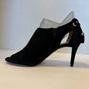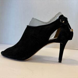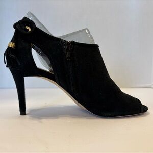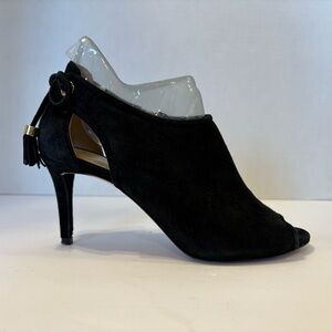 Michael Kors black suede leather peep toe stilleto fringe accent shoes 7.5 M