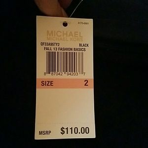 Michael Kors trousers, black, machine washable, 63% polyester, 33% rayon, 4% spandex. 33 in inseam, 10 in width at leg hem, size 2