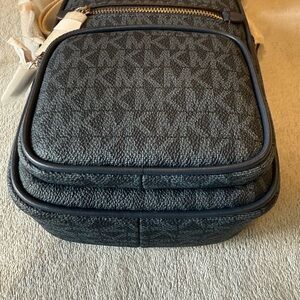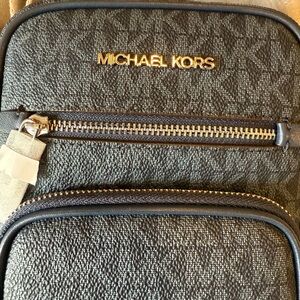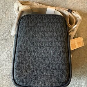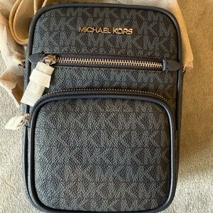 This Michael Kors messenger bag in blue combines elegance with functionality, featuring a structured design and silver-tone accents. Its compact shape and adjustable strap make it ideal for carrying essentials in style.