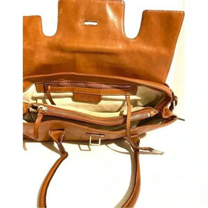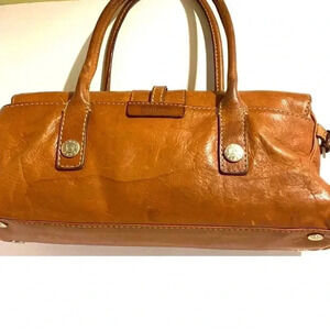 Michael Kors brown distressed leather satchel handbag with silver tone hardware main compartment 3 pockets at interior wall 1 zip closure fabric lining exterior discoloration marks scratches strap wire have some stretch lining have some stains hardware have some tarnishing hight 8” wide 13.5” depth 3.25” strap drop 6”The dimensions are based on approximately measurements before placing an order please check take a moment to view all photos using feature for a closer look