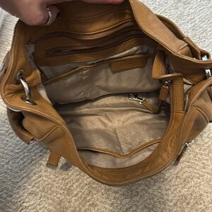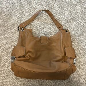 In overall good used condition. There is Wear on the bottom of the purse. Some of the leather has worn off. Inside a purse is in good condition. No stains and all zippers are function. Questions? Leave a comment below!