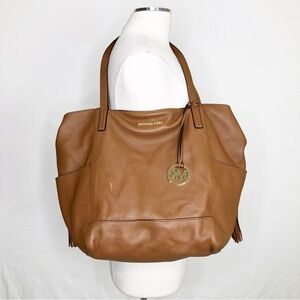 Michael Kors, brown leather tote bag with removable compartment on the inside