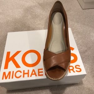 Light brown leather wedges with cross cross at the toe. Comes wih a padded insole! Gently worn in GREAT condition!!
