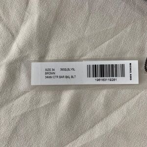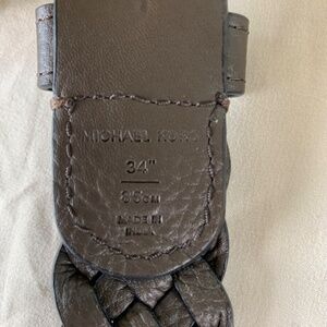 Crafted with the utmost attention to detail, this Michael Kors braided belt is a timeless accessory that complements any outfit. The rich brown leather, interwoven with a sophisticated braided pattern, offers a versatile look that can transition from casual to formal settings with ease. Accompanied by a striking gold-plated buckle, it adds an elegant touch to your wardrobe ensemble. Designed to fit a 34-35 inch waist, this size 34 belt ensures a comfortable fit. With its solid pattern and durable leather material, it promises to be a long-lasting piece that reflects both style and durability.