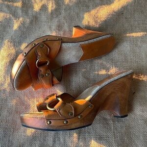 Michael Kors, brown slides, wooden retro vintage Y2K Rare Size 7