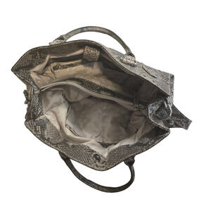 Michael Kors brown snake skin print leather Hamilton satchel/crossbody silver