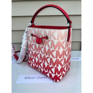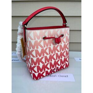 Michael Kors bucket bag suri medium graphic ombre print leather coral reef multi