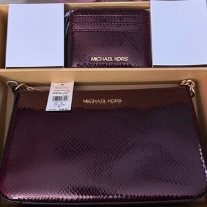 Elegant oxblood / burgundy colored shoulder bag in original box with signature Michael Kors logo. Shimmery and elegant, never used and has tags, need to downsize my purses :)