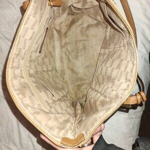 Michael kors camel and gold colored bag. Clean, no tares, rips or loose threads. Shoulder straps are perfect