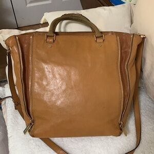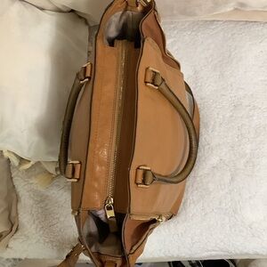 Michael Kors, camel leather tote gold zipper detailing. Comes with shoulder strap.