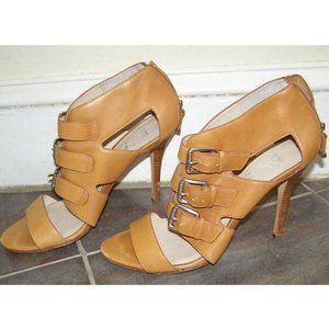 Michael Kors cognac leather sz 9 buckle heels GUC
