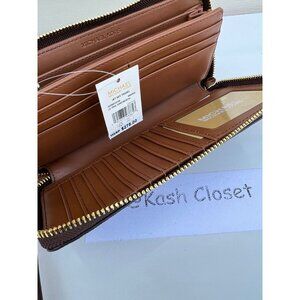 Michael Kors continental wristlet travel large wallet MK signature brown