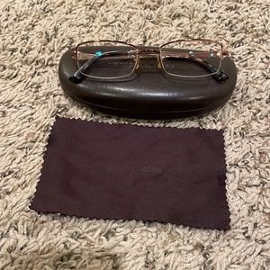 Michael Kors copper/tortoise half-frame eyeglasses with case and cleaning cloth