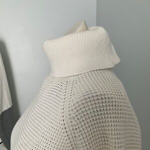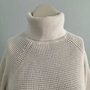 Long sleeve turtle medium weight sweater in a woven fabric,and not scratchy.No holes or stains.Perfect longer length for leggings.Very good used condition. Fast ship!