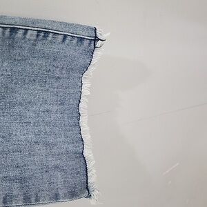 Michael Kors cropped jeans, raw hem, silver hardware with MK logo on back pockets and bottom. bottom fly. inseam measures 24.5"
