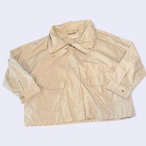 Stylish and comfortable women’s cropped lightweight trench coat in a versatile beige color. Perfect for spring, traveling, and casual outings.