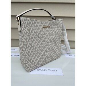 Michael Kors crossbody messenger bag MK signature large jetset bag light cream