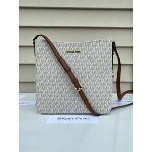 Michael Kors crossbody messenger bag large jet set MK signature purse vanilla