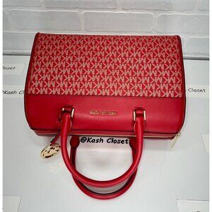 Michael Kors duffle bag satchel jet set travel purse MK signature bright red mlt
