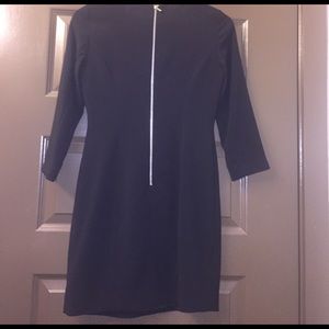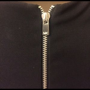 Form fitting, 3/4 sleeve, back exposed silver zipper with MK pull. Hits mid thigh.