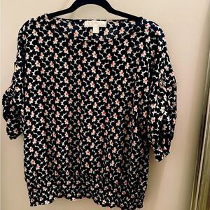Michael Kors floral top with 1/2 tab roll up sleeves.