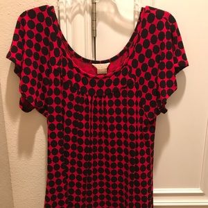 Flutter cap sleeve top with a flowy stretch material, very comfortable. 95% rayon, 5% spandex.