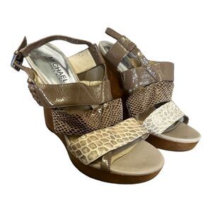 Michael Kors genuine leather strappy wedge size 7 snakeskin crocodile pa…