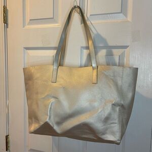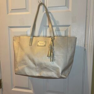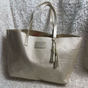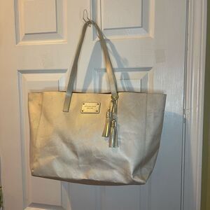 Michael Kors gold shimmery synthetic leather large tote bag the inside has a side zipper pre owned in good used condition. See all pictures any questions please message.f7