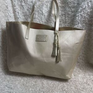 Michael Kors gold shimmery synthetic leather large tote bag .