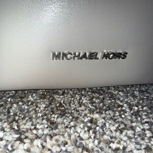 Michael Kors gray drawstring bucket bag with shoulder strap