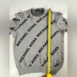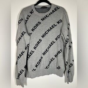 Michael Kors gray sweater black all over double sided logo sz M cotton preppy