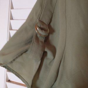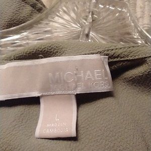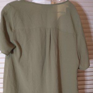 Michael Kors green short sleeve zip up crepe top v neck size Large