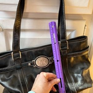 Elevate your style with this stunning shoulder bag from Michael Kors. Crafted from fine leather, this medium-sized bag is perfect for any occasion. The exterior is a classic black color, while the interior lining matches perfectly with a sleek black finish. The bag features a comfortable leather handle/strap, making it easy to carry all day long. With its chic and versatile style, this Michael Kors shoulder bag is perfect for any woman who wants to add a touch of elegance to her wardrobe.