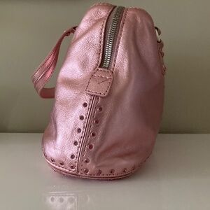 A vintage Michael Kors bag, metallic pink leather studded with sparkly pink rhinestones. This bag has never been used, it's new without tags, and it comes with the original dust bag. On the inside it has four small pockets and a larger zippered pockets. It measures approximately 12.5 x 8 x 6 and it will take you effortlessly from day to night. If you like bling this bag is for you!!!!